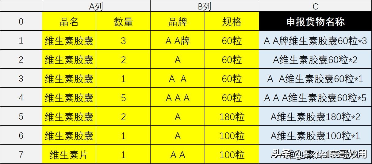 最近有位小伙伴请表哥帮忙解决个难题。他在报关的时候要求申报货物的名称结构与他之前保存的货物信息结构不一致,需要自己一个个调整后才能审核通过。如果是单品还好,但若是种类繁多,不但要花费大量时间,而且还容易出错。
