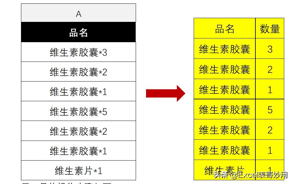 第一步:从A列提取”品名”、”数量”;