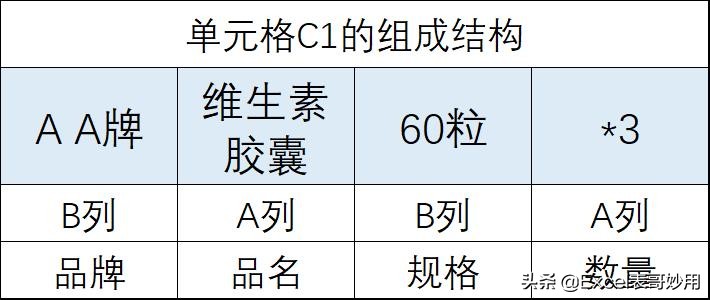 以单元格C1为例,组成结构如下: