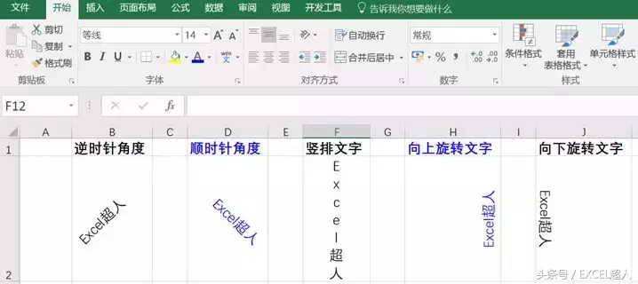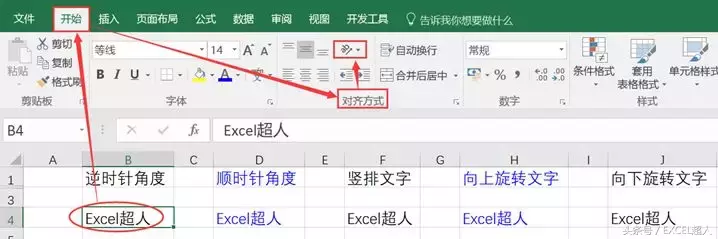 步骤2:对齐方式【逆时针角度】、【顺时针角度】、【竖排文字】、【向上旋转文字】、【向下旋转文字】