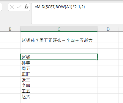 如果按照两个字一拆分呢 ,就是要得到赵钱 孙李 周五等的结果,就是