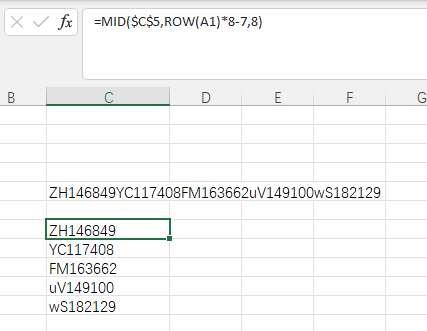 因为需要进行填充的每个字符固定8个字符,所以取8个,第一个进行填充的单元格从第一个字符开始提取,提取8个字符,那么 第二个要进行填充的单元格就要开始从第9个开始提取,
