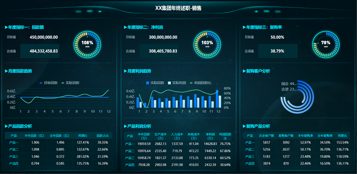 销售年终汇报本年工作情况时,需汇报本年度产品利润、产品回款、指标达成情况等,还需对利润趋势和回款趋势进行分析,总结原因。方便复盘和制定明年工作计划,以及评级