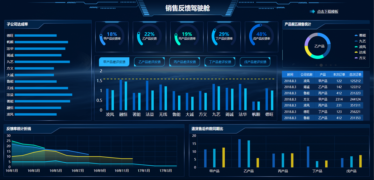 汽车制造公司需对汽车的产量、品质、利润等进行查看和管理,通过该模板,可分析汽车的质量,产量,利润,安全事故等数据