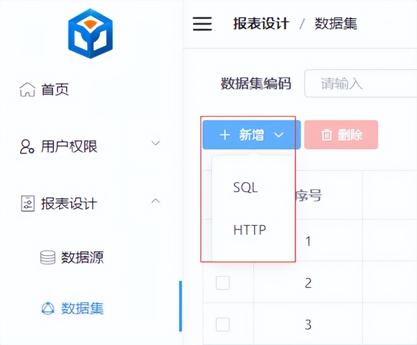 数据集支持两种类型:SQL和HTTP