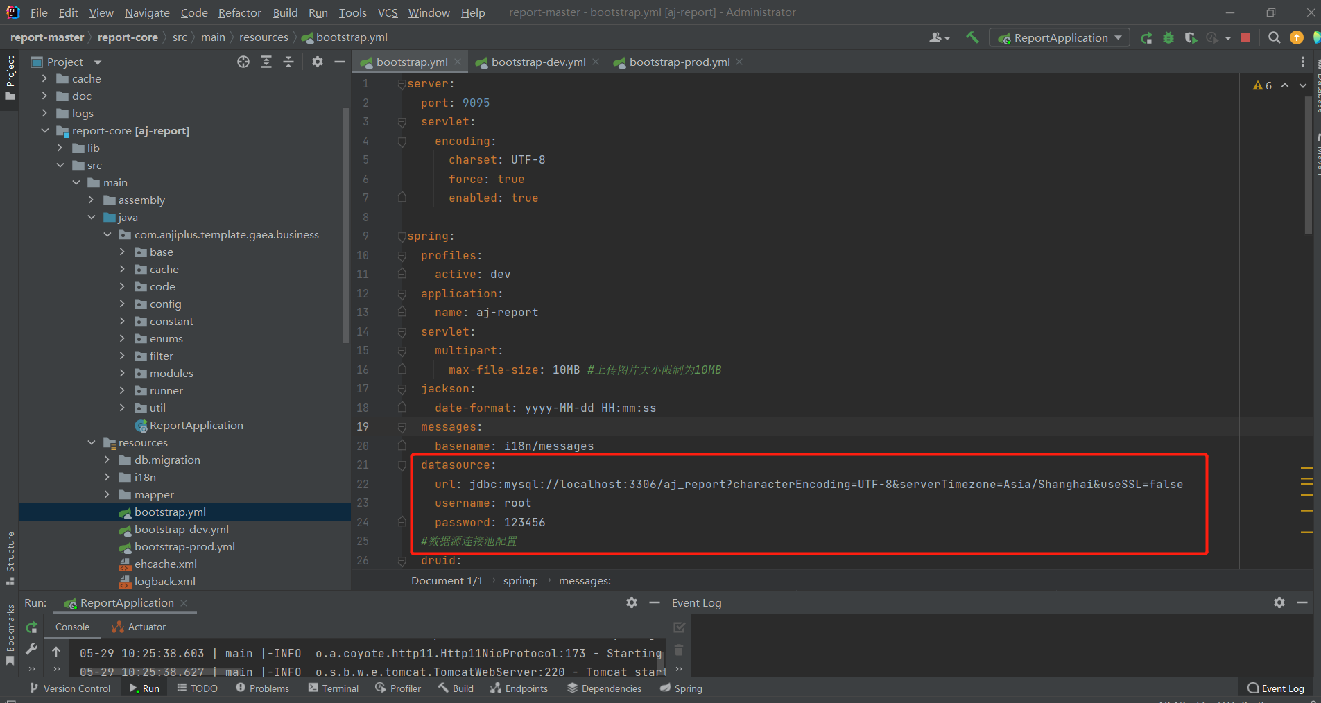 打开“跟目录report-coresrcmainresources”目录,编辑bootstrap.yml文件