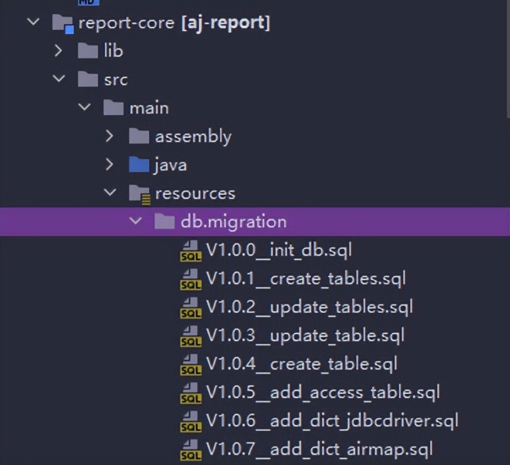 数据库初始化:sql文件的地址是:report-core --> src --> main --> resources -- > db.migration
