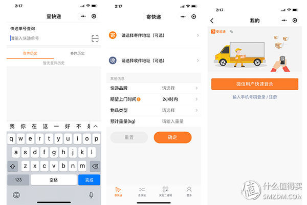 这个除了通过快递单号查询快递进程(还可以扫描快递上条形码),还能通过定位,看到你身边有哪些可以寄快递的快递员,联系他们就可以寄快递了。
