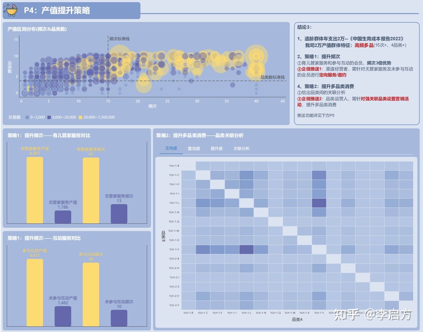 ④part4-产值提升策略:在确定产值提升目标后,接下来要解决提升产值的路径问题。通过对高产值人群的分析,发现“高频多品”的特征。