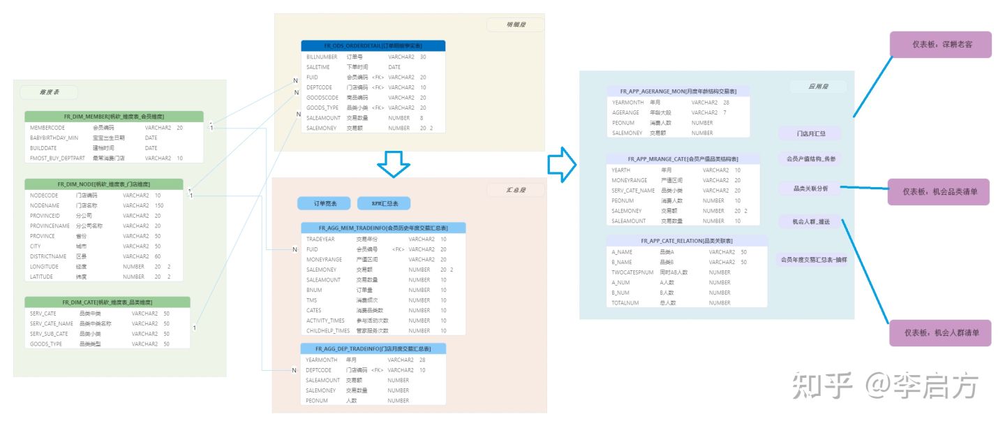 ②维度表:A-会员信息表;B-品类信息表;C-门店信息表