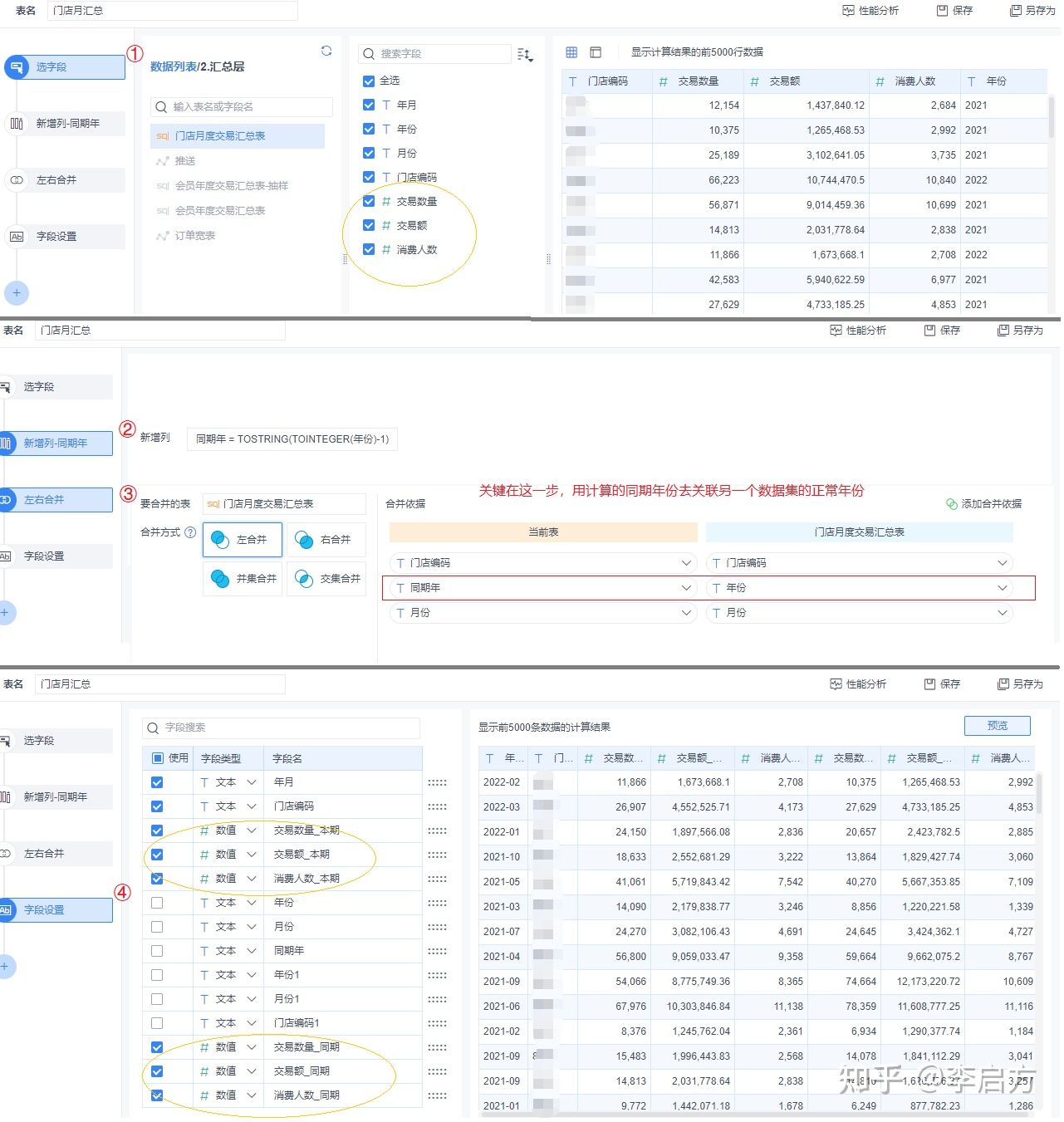例子1:使用【左右合并】自连接,在自主数据集中快速计算同比