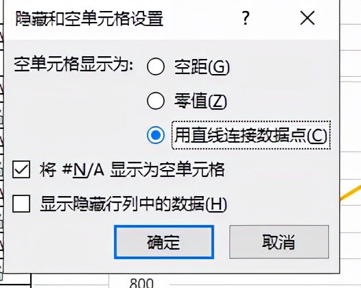 这时我们发现折线图没出来,我们只需点击图表,鼠标右键-选择数据-点击对话框下方的隐藏的单元格和空白单元格。