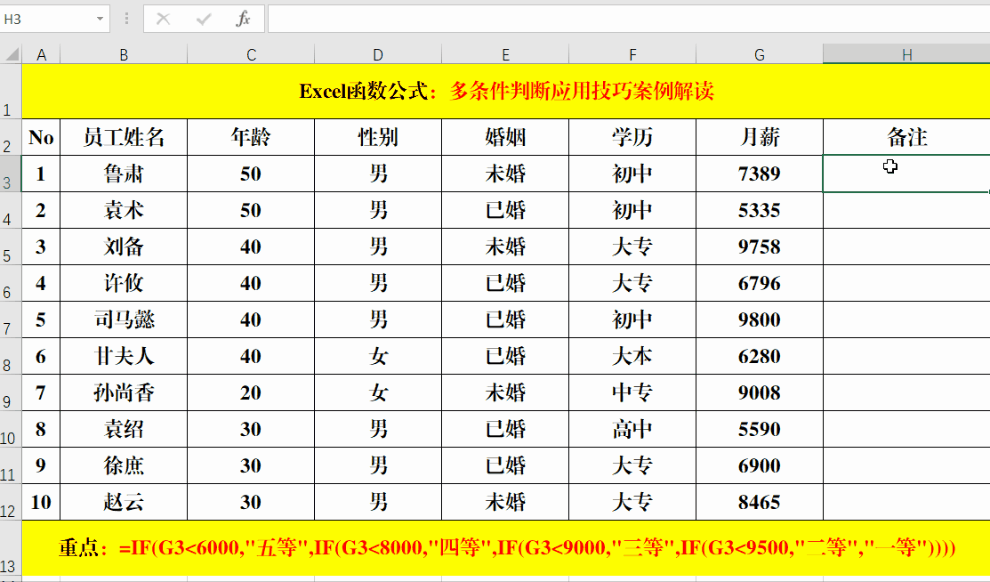 一、多条件判断:If函数法。