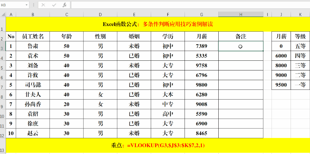 四、多条件判断:Vlookup函数法。