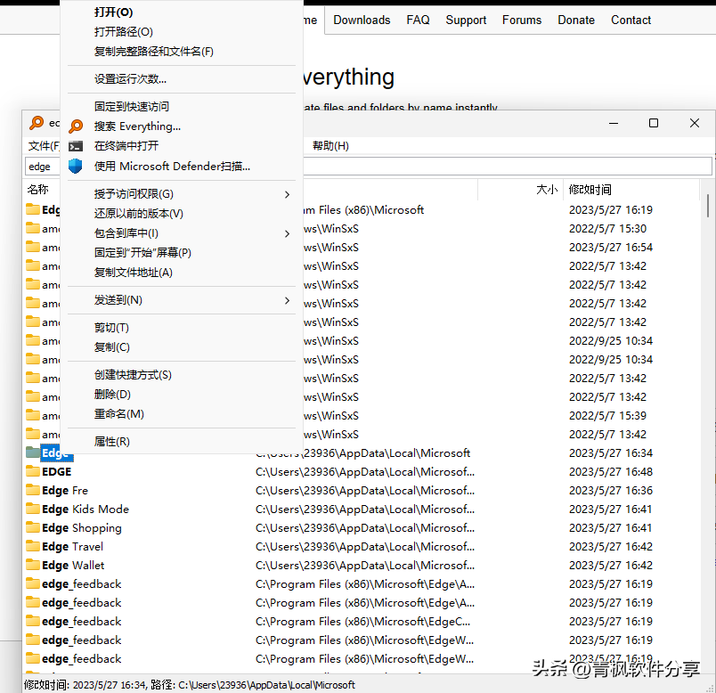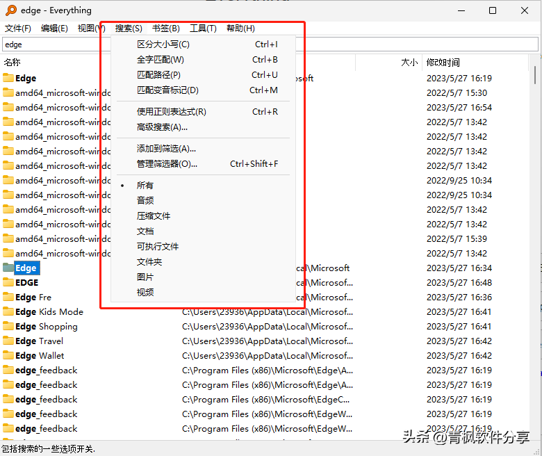 如输入edge关键字,会出现与edge相关的文件和目录,搜索结果速度极快,毫秒级!