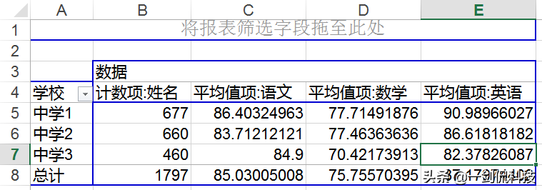 3)现在有小伙伴们会问了,用透视表计算出来的平均分,对不对?