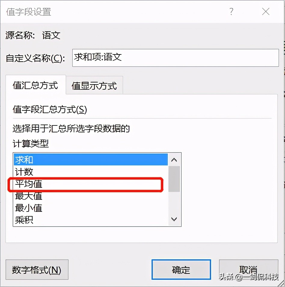双击左边表格的“求和项:语文”,弹出【值字段设置】对话框,如图6所示。