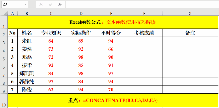 六、函数Concatenate+IF+Sum:评定员工考核绩效。