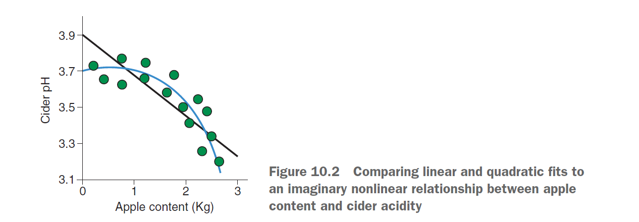 可以看到这两个变量间是非常明显的非线性关系,此时我们需要考虑给自变量加上多次项拟合。