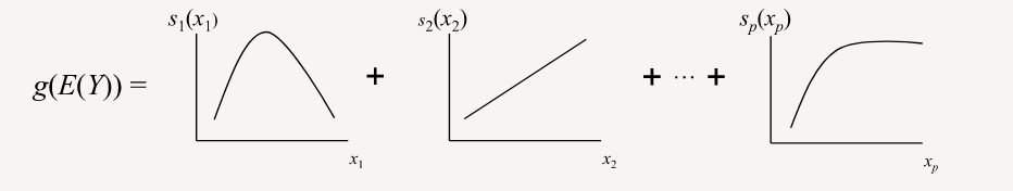 GAMs automatically learn a nonlinear relationship between each predictor variable and the outcome variable, and then add these effects together linearly, along with the intercept.