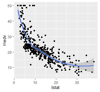 ggplot(train.data, aes(lstat, medv) ) +