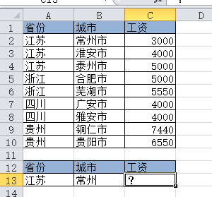 类似例子还有很多,例如省份和城市,两个地方来查找工资就是一个典型的例子,如图。