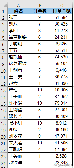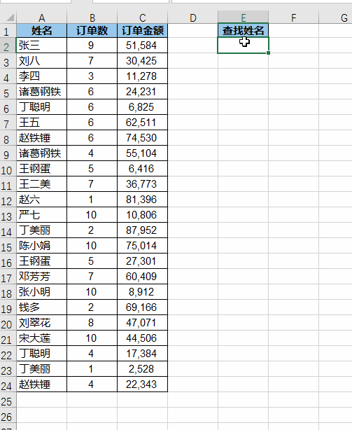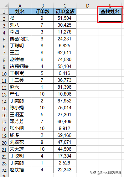 下图 1 为某公司员工的订单列表。请允许根据姓名模糊查找,并将所有找到的行高亮显示。