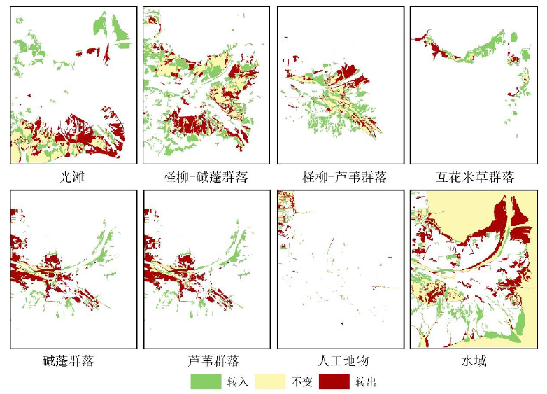 根据上面的土地覆被图,绘制下面的侵蚀变化图,植物群落与地类变化图。制作土地利用转移矩阵。