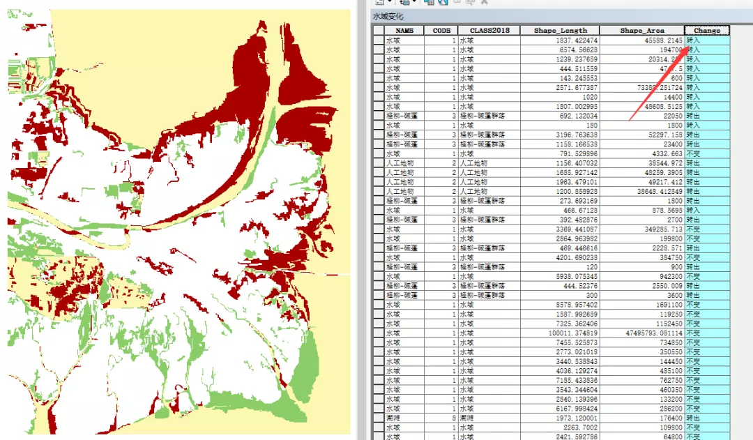 - 土地覆被并集-水陆边界交集,求侵蚀变化情况