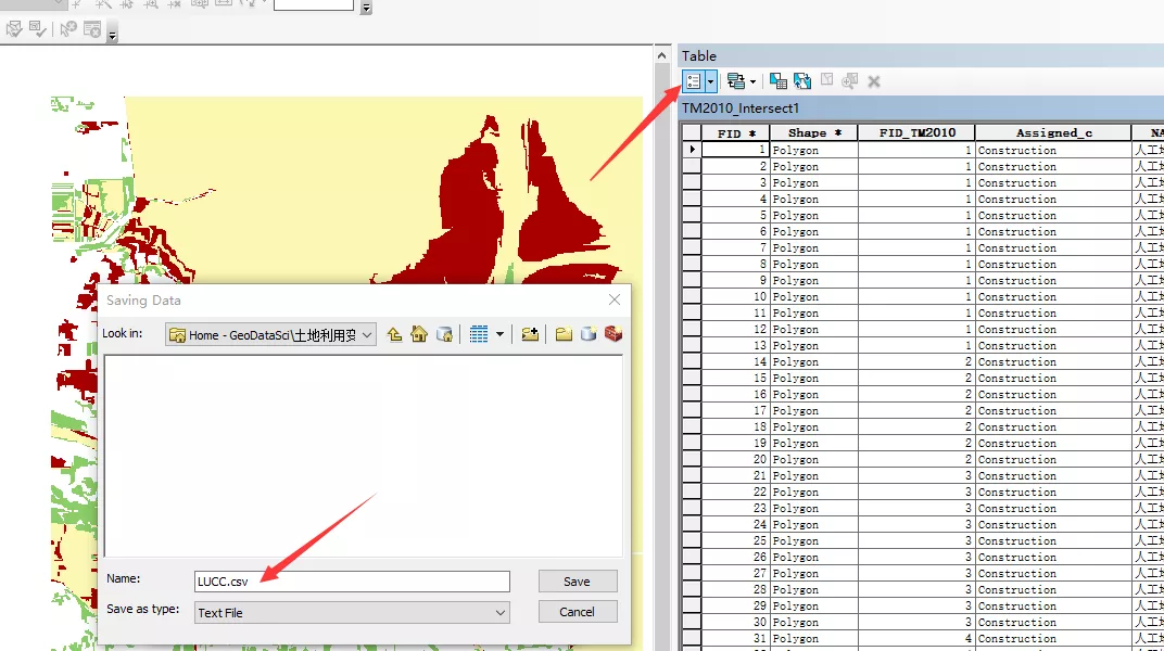 - 将图1两个矢量求交集(输出要素类:TM2010_Intersect1)