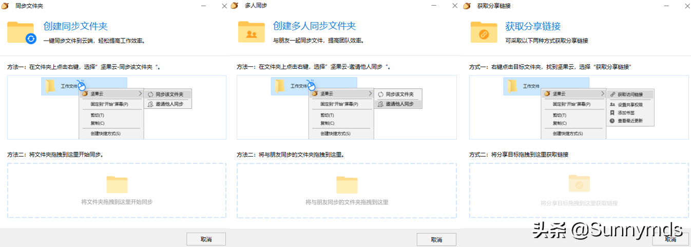 它可以创建同步文件夹、创建多人同步文件夹、获取分享链接等,因为我的应用场景比较单一,所以有些功能也没用过,大家感兴趣的话可以尝试下。使用上都有说明,比较 人性化,学习成本低。