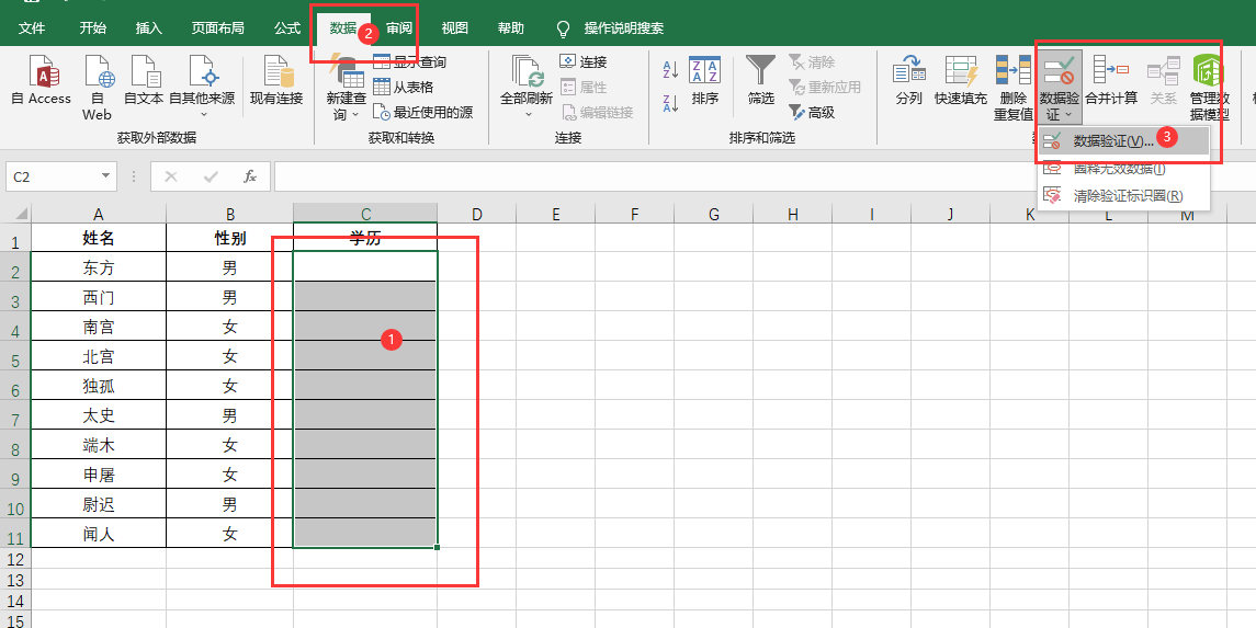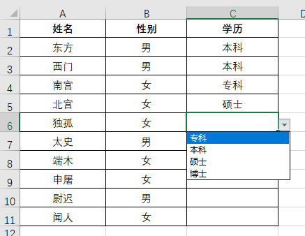 当输入的数据有固定范围时,可以使用数据验证功能,通过下拉列表输入数据