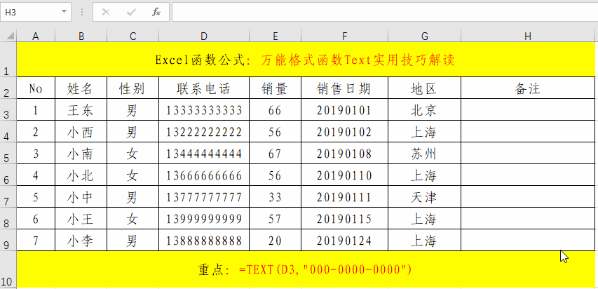 Text函数不仅可以分段显示手机号,也可以显示银行卡等。