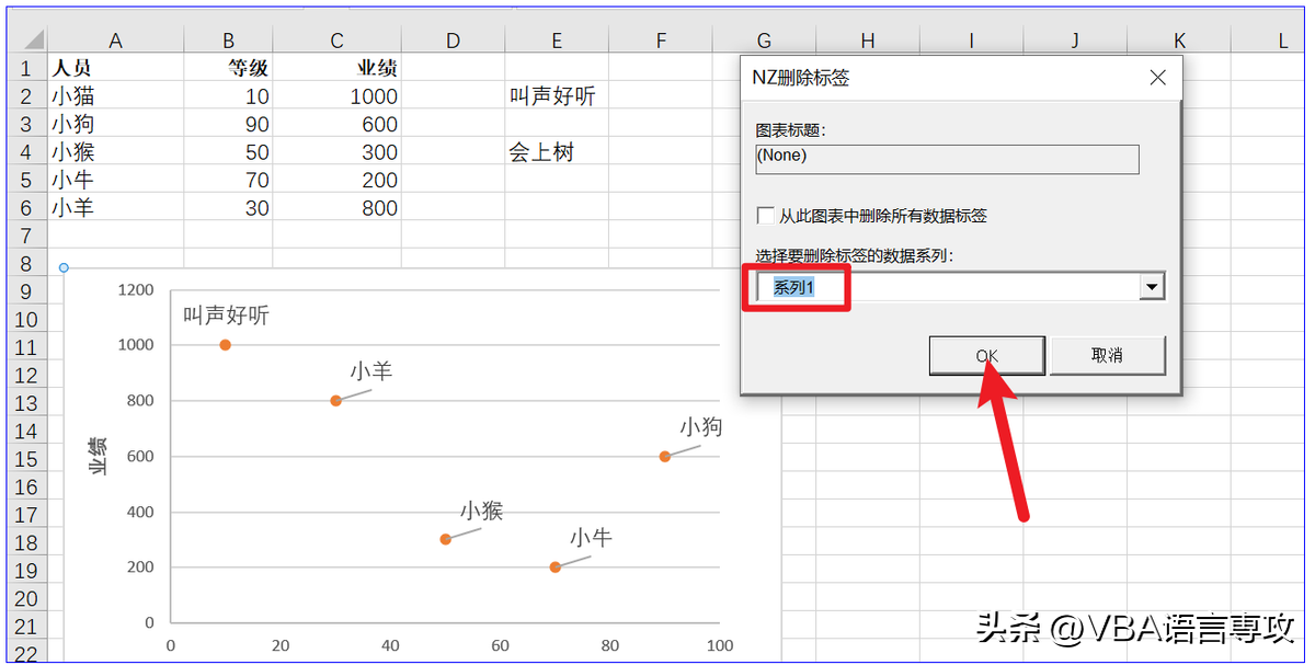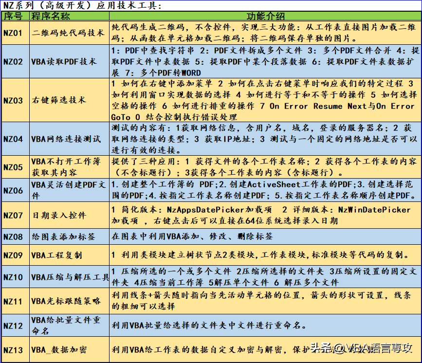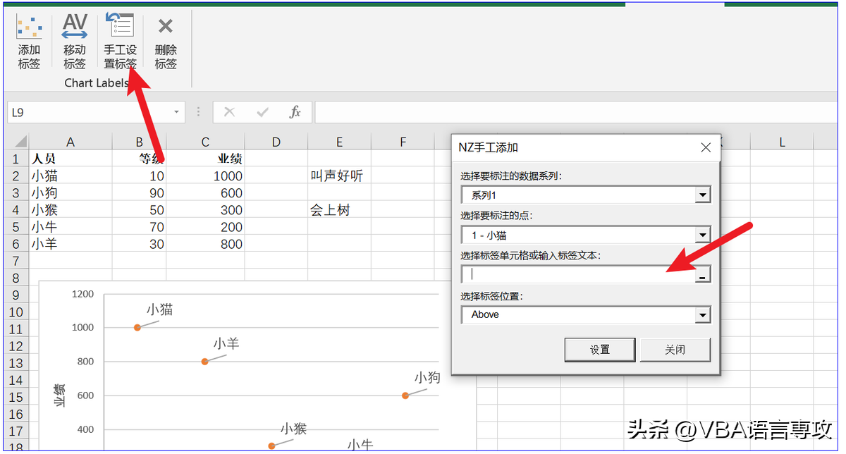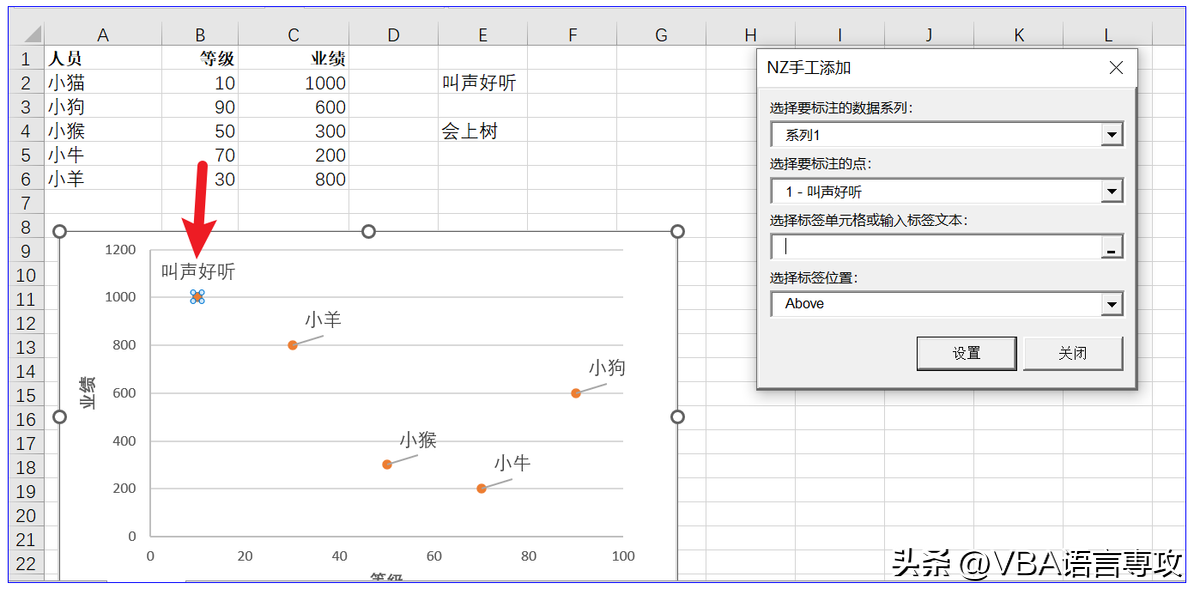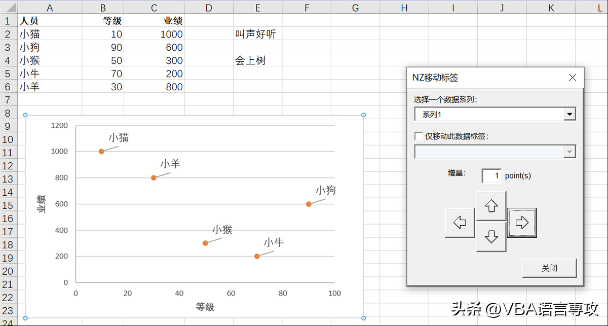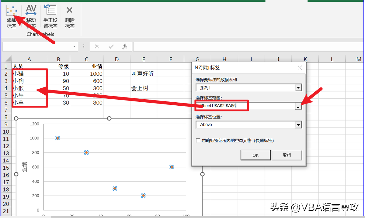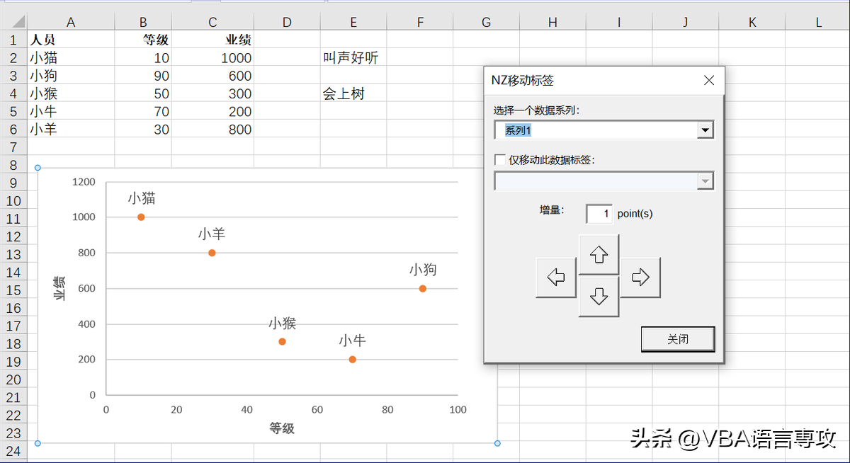 我的教程一共九套及VBA汉英手册一部,分为初级、中级、高级三大部分。是对VBA的系统讲解,从简单的入门,到数据库,到字典,到高级的网抓及类的应用。大家在学习的过程中可能会存在困惑,这么多知识点该如何组织成自己的程序呢?VBA可否能组织一个大型的程序呢?如何让VBA形成一个工具,拿来就用呢?在我的教程完结后,我陆续推出这类技术工具资料,这类工具整合了若干多的VBA知识点,让大家感受到VBA之强大。工具资料共两个系列,一个是YZ系列,一个是NZ系列。今日给大家介绍的是NZ系列工具:NZ08:图表添加标签工具