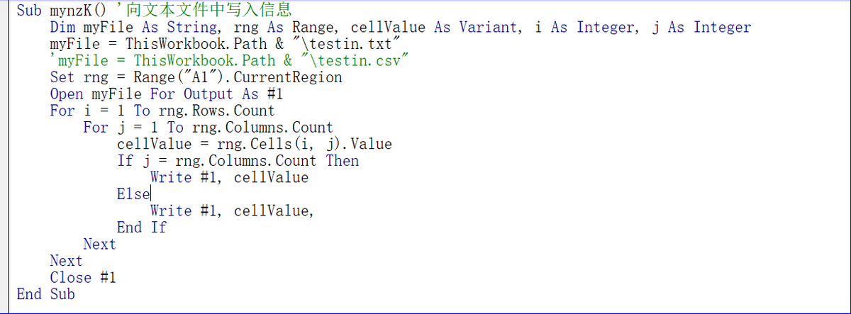 1) myFile = ThisWorkbook.Path & "testin.txt" 给文件名变量赋值,给出要存储的文件路径及文件名。