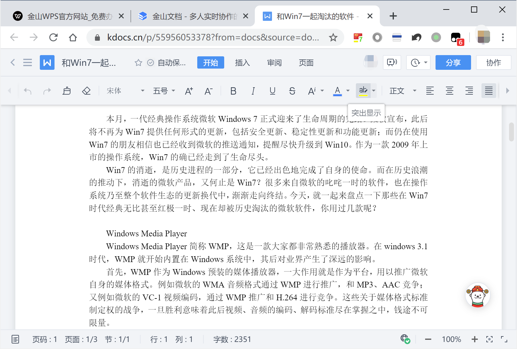 WPS云文档小结