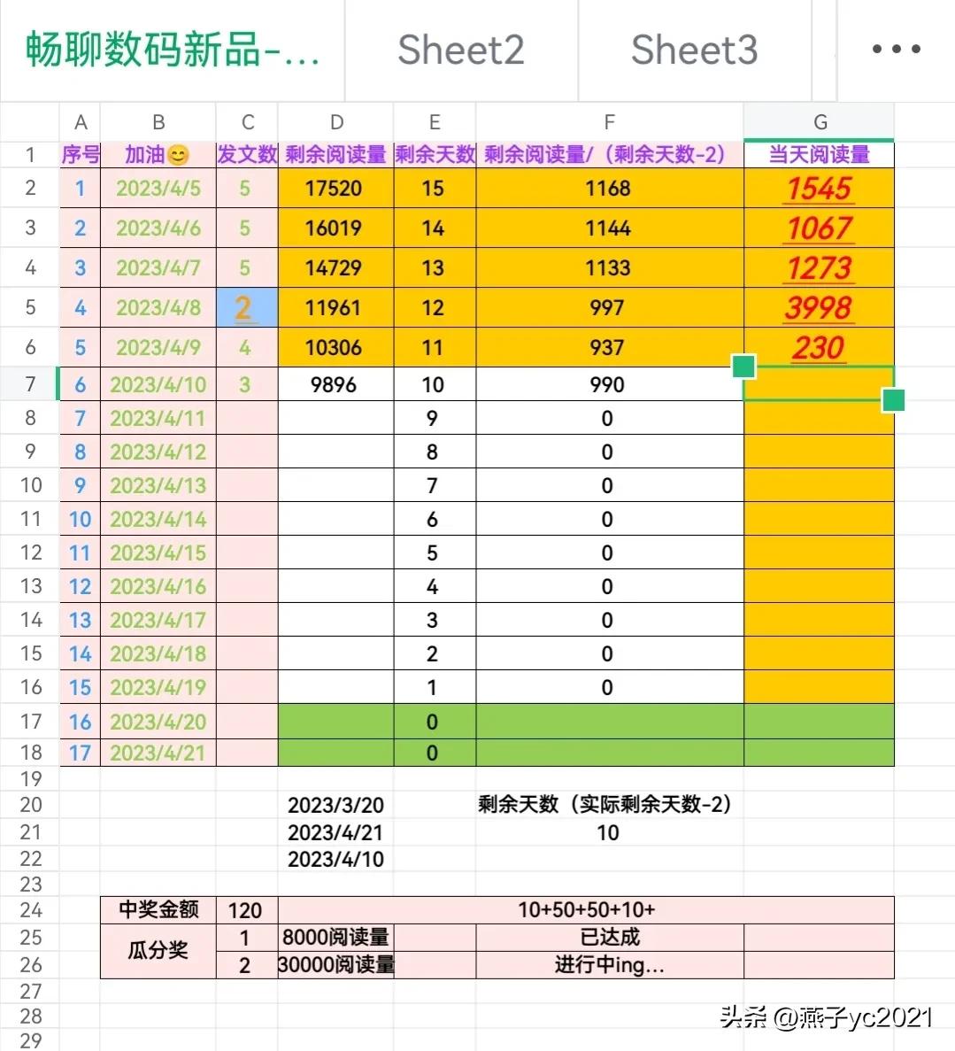 我用excel做了一个统计表,每日跟进自己的作品阅读量,并进行累计阅读量的统计!
