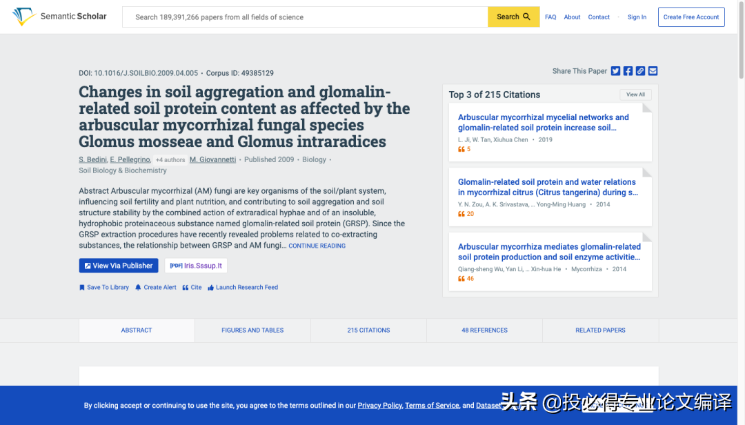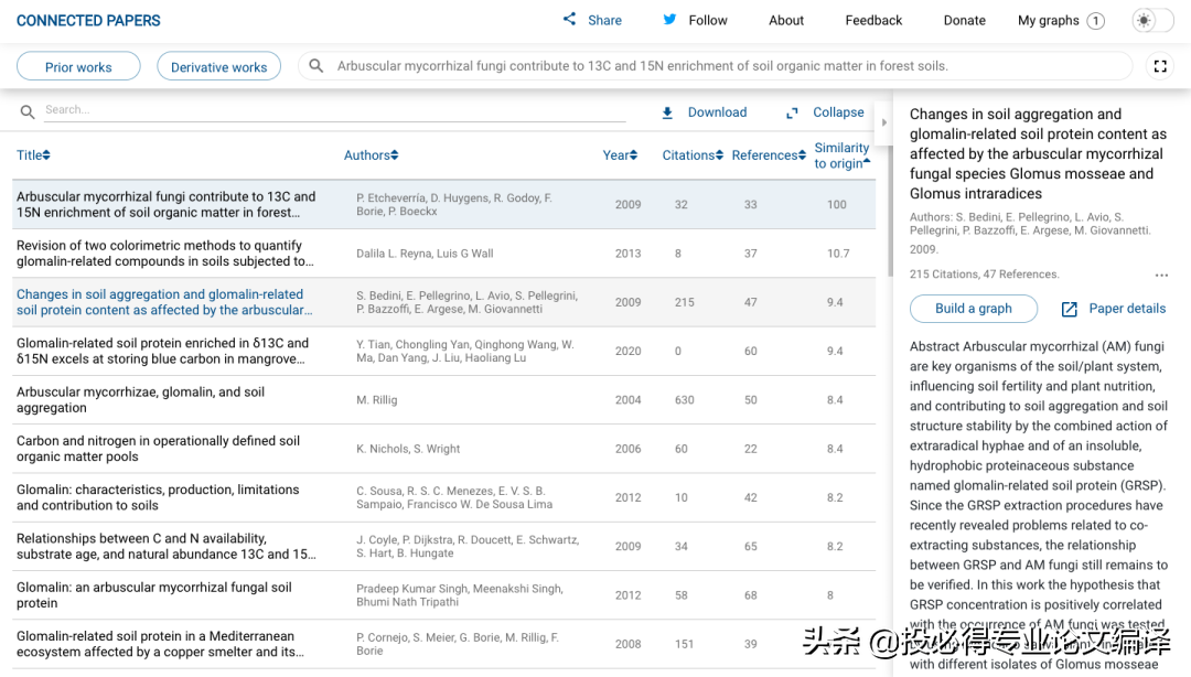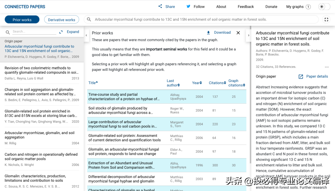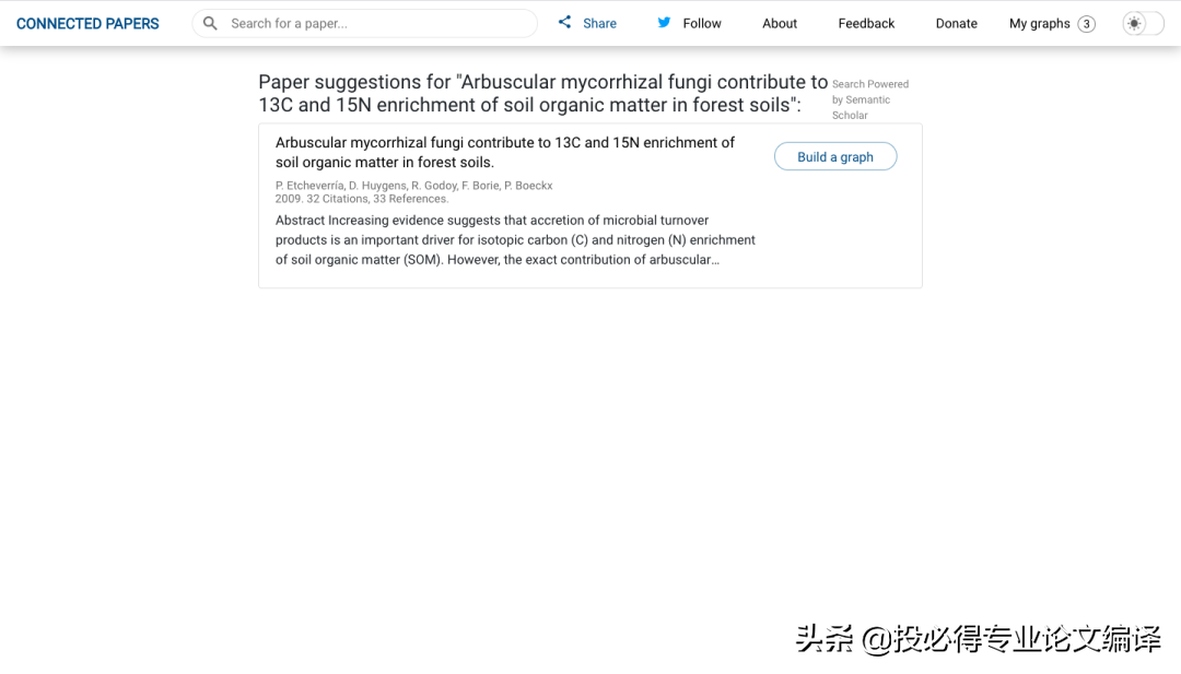 以小编最近在看的一篇2009年发表在Soil biology & biochemistry文章为例。输入文章标题——“Arbuscular mycorrhizal fungi contribute to 13C and 15N enrichment of soil organic matter in forest soils”