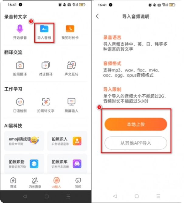 1)打开搜狗输入法,点击“导入音频”,在翻译界面中,选择语种;