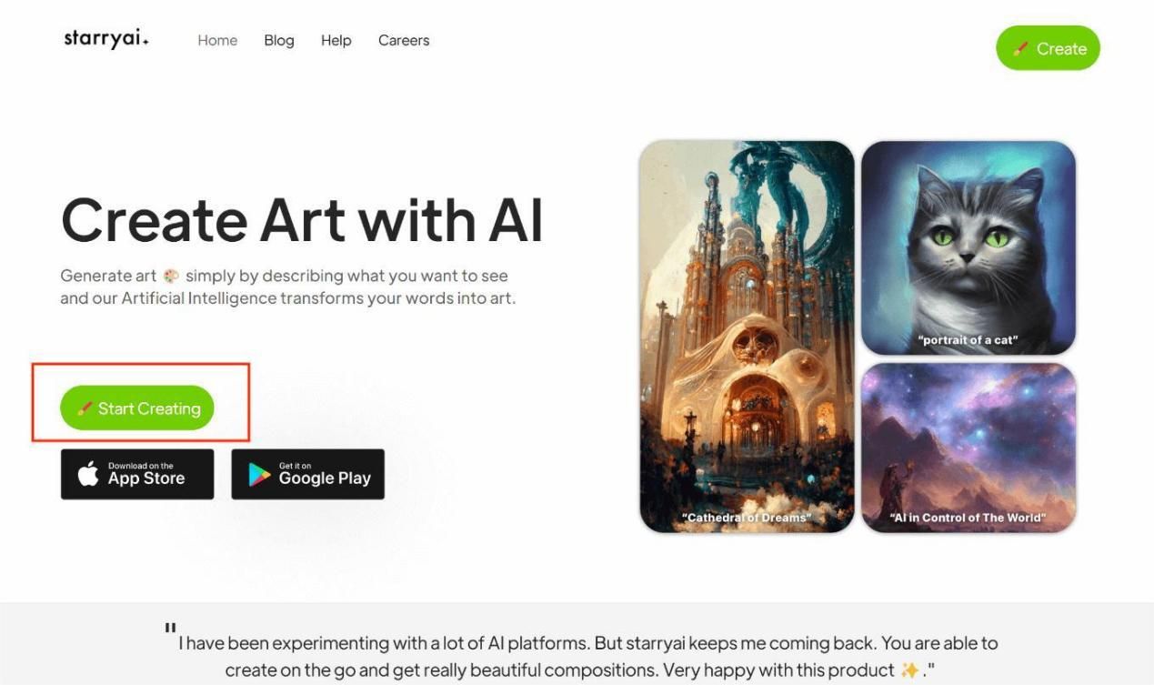 Ⅰ:进入网页后,点击“StartCreating”按钮。
