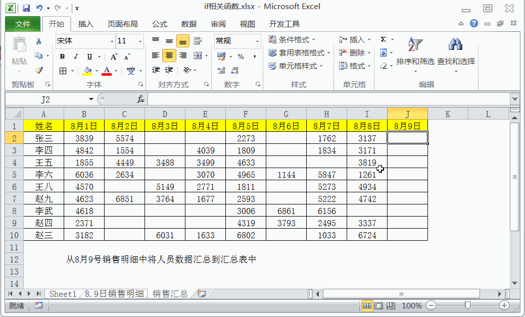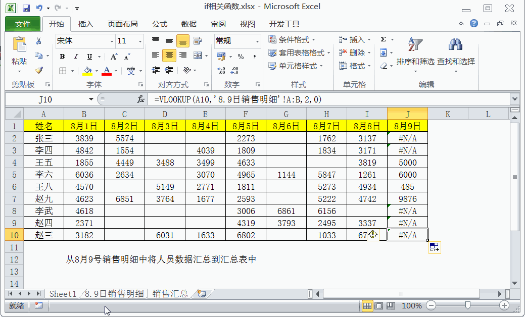 ▼案例:从8月9日销售明细数据匹配到汇总表中