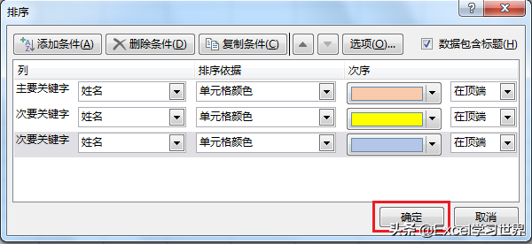 今天再教一个按照填充色排序的方法。