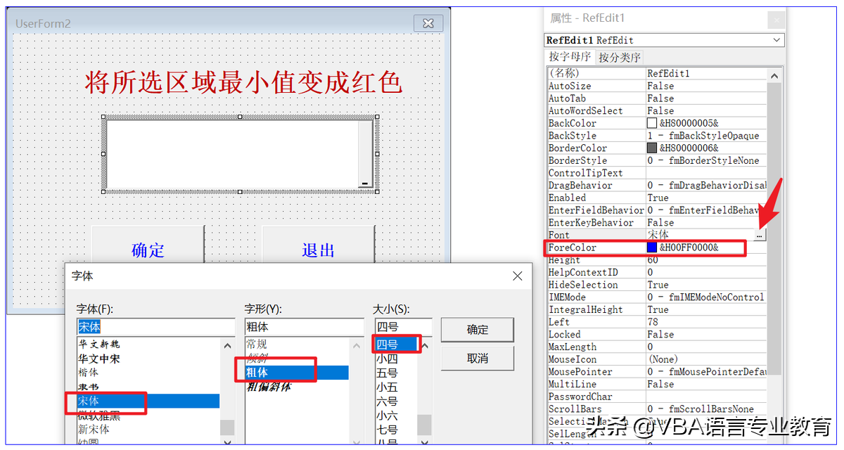 命令按钮的属性设置,只是Font属性,和RefEdit控件的Font属性一样。