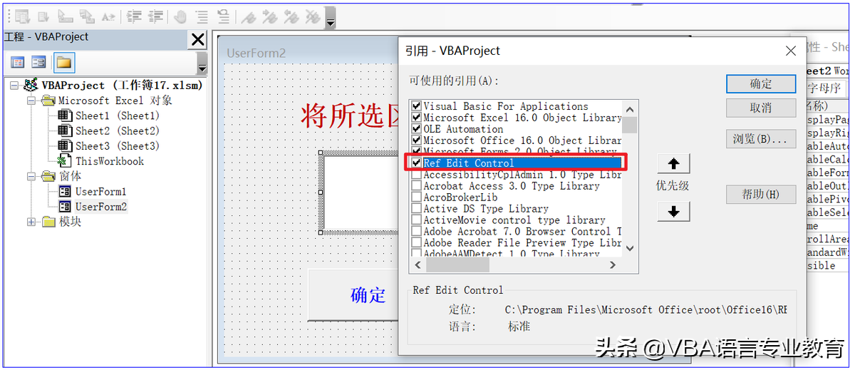如果大家在这个“可使用的引用”中没有发现这个控件,可以添加一下:打开浏览,找到C:Program FilesMicrosoft OfficeOFFICE12目录下选REFEDIT.DLL文件,注意:不同的OFFICE有可能是OFFICE11、12、14等等,有的版本的dll文件是REGEDIT.DLL,点击打开之后—确定—保存,再打开可以了。
