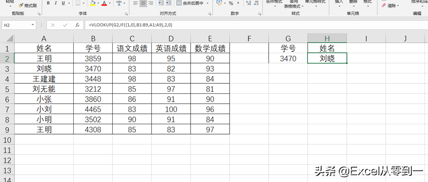 所谓的反向查找,就是我们要查找的结果在查找列的左边,我们就称之为反向查找,如下图,我们想根据学号查找姓名,这个就是所谓的反向查找,反向查找也仅仅是针对vlookup来说的,我们只需要将公式设置为 :=VLOOKUP(G2,IF({1,0},B1:B9,A1:A9),2,0),然后按ctrl+shift+回车填充公式即可