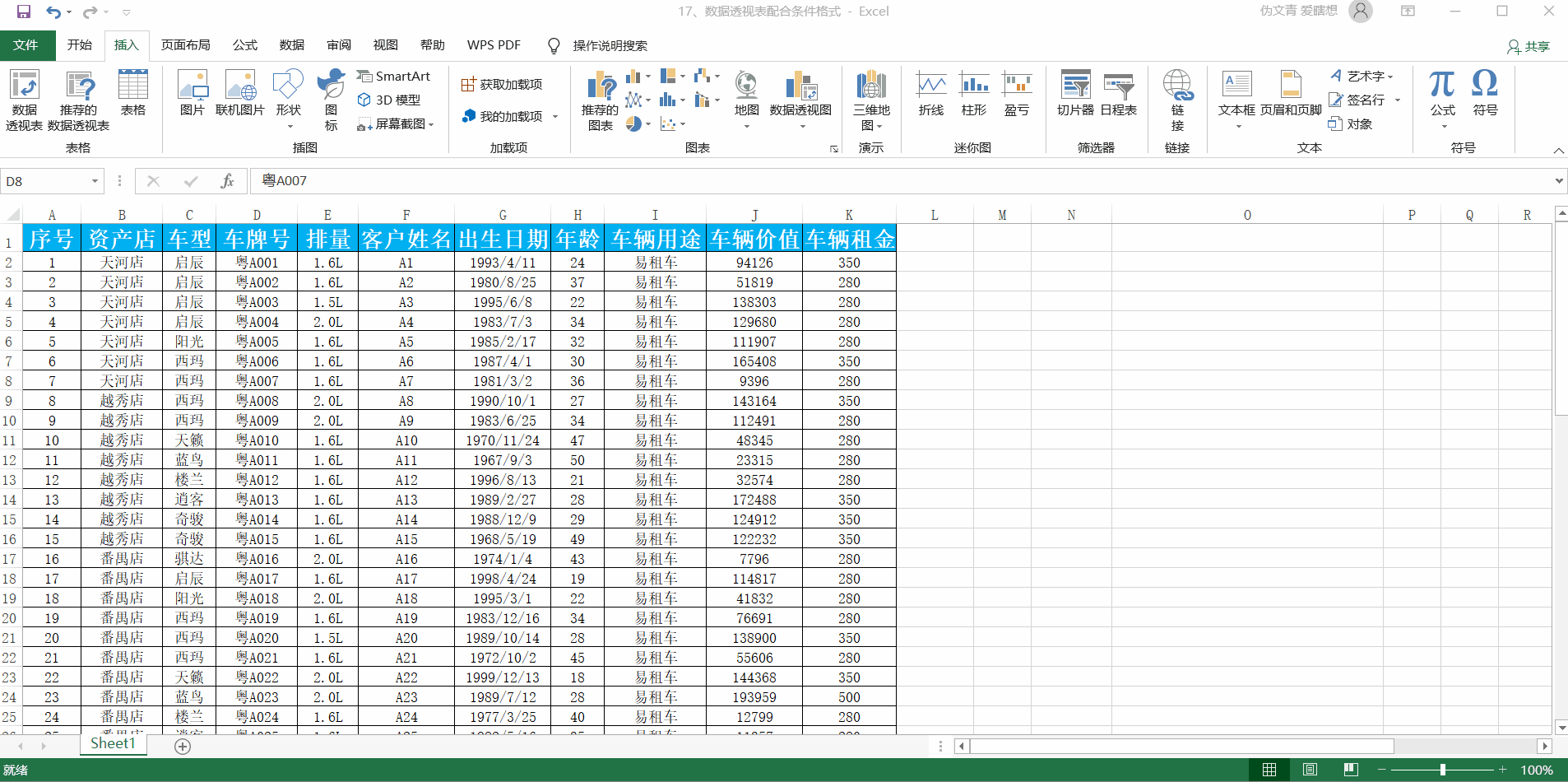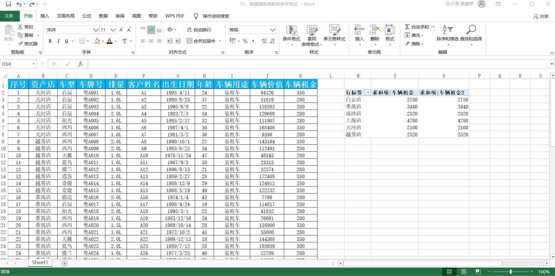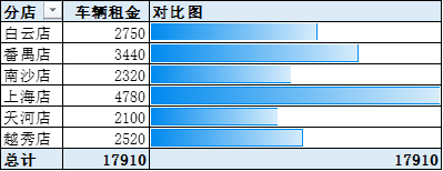 一、有如下租车信息表,如何直观的体现每家店的业绩: