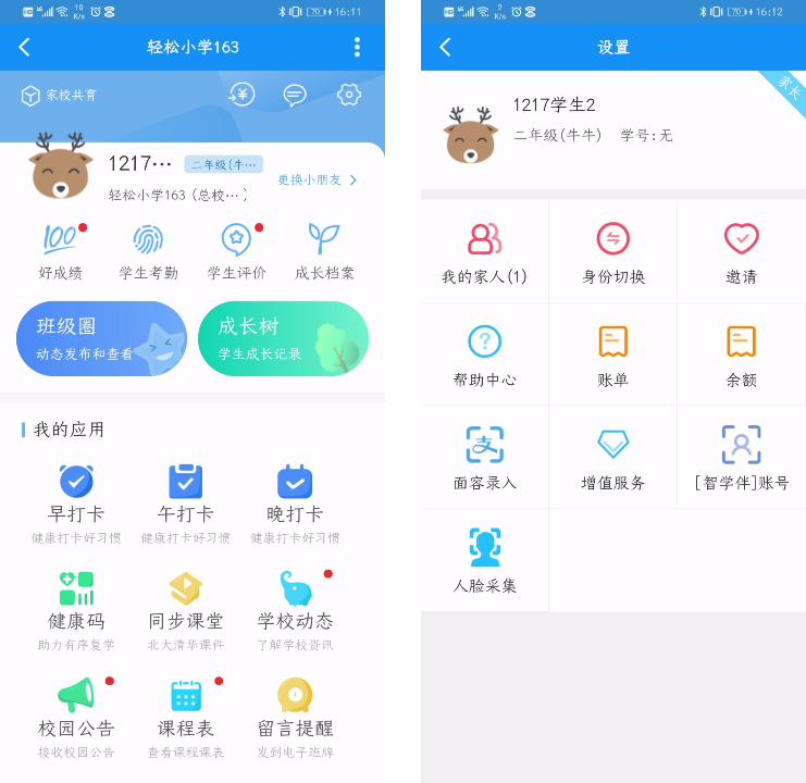 5、家长端移除【智能门禁】应用,在设置中新增【人脸采集】应用,家长可以通过【人脸采集】应用进行人脸录入。