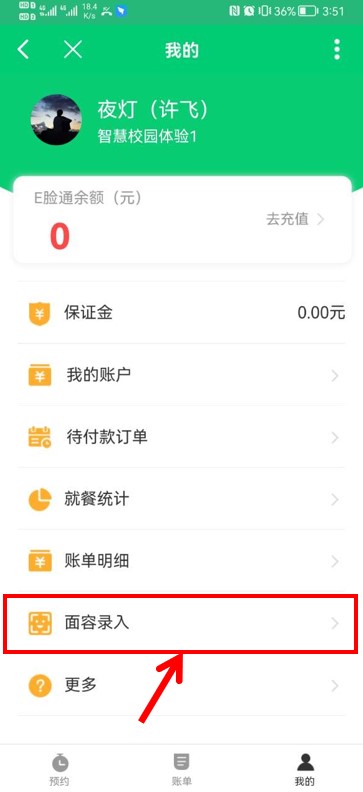 1、【AI食堂】手机端【我的】节点下增加了【面容录入】。(以前是在智慧校园里录入)