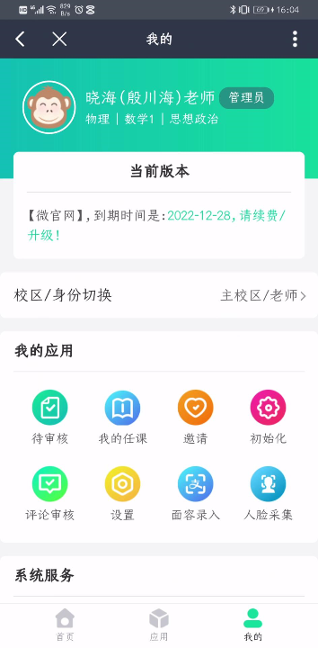 3、人脸采集:教师可以通过【我的】>【人脸采集】应用进入进行人脸录入。