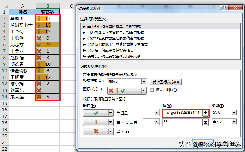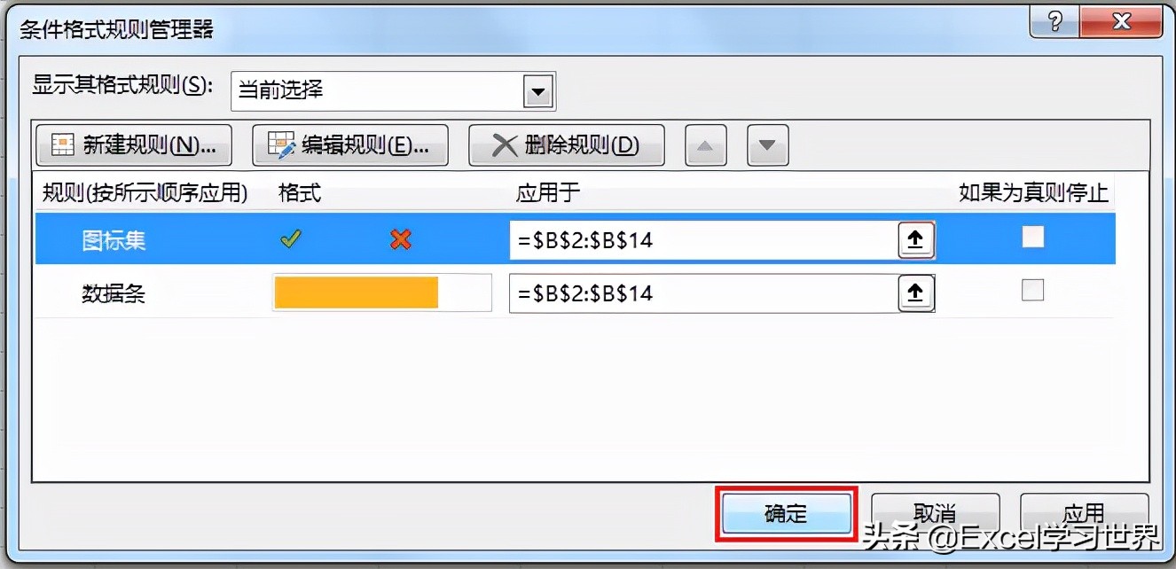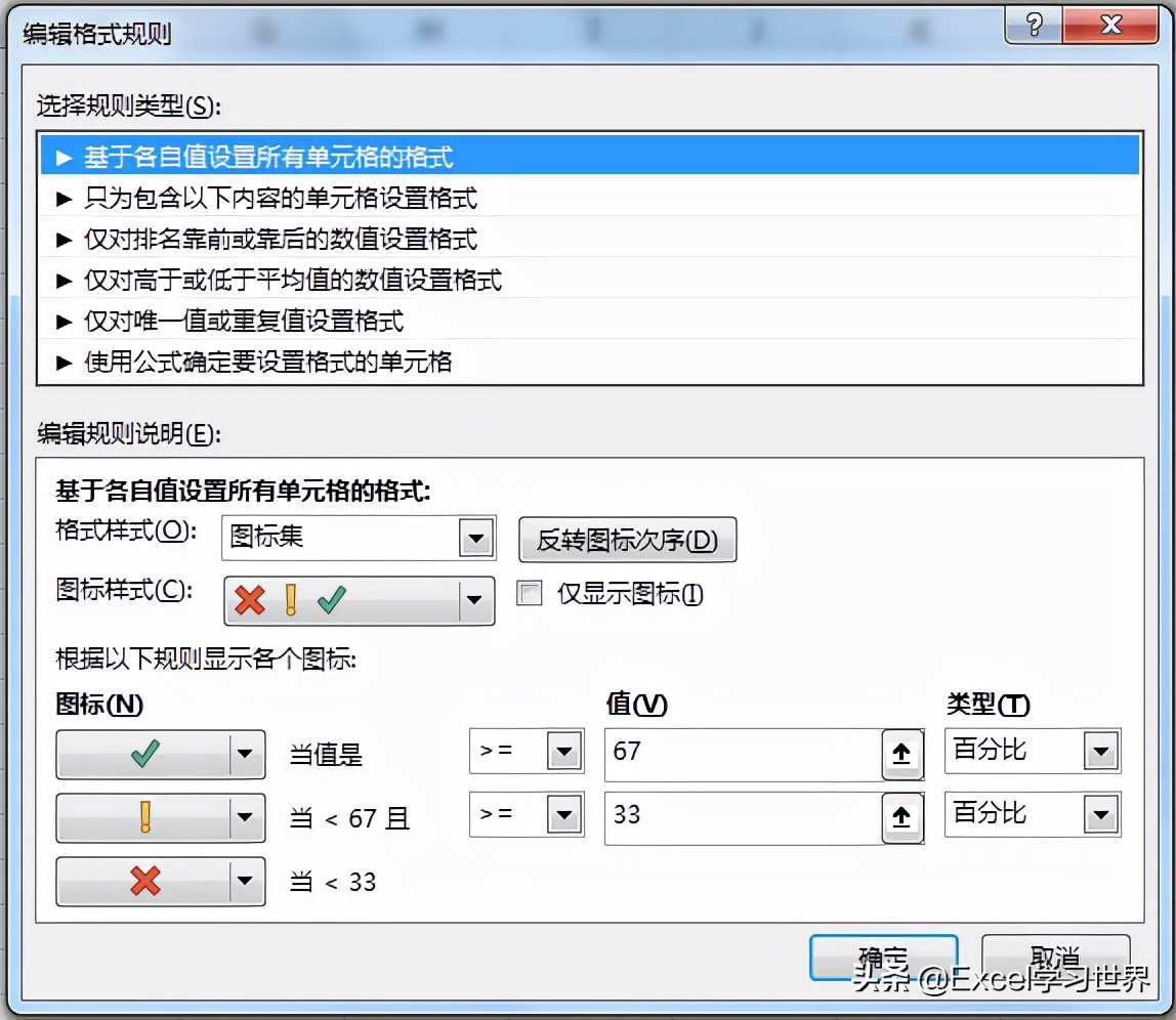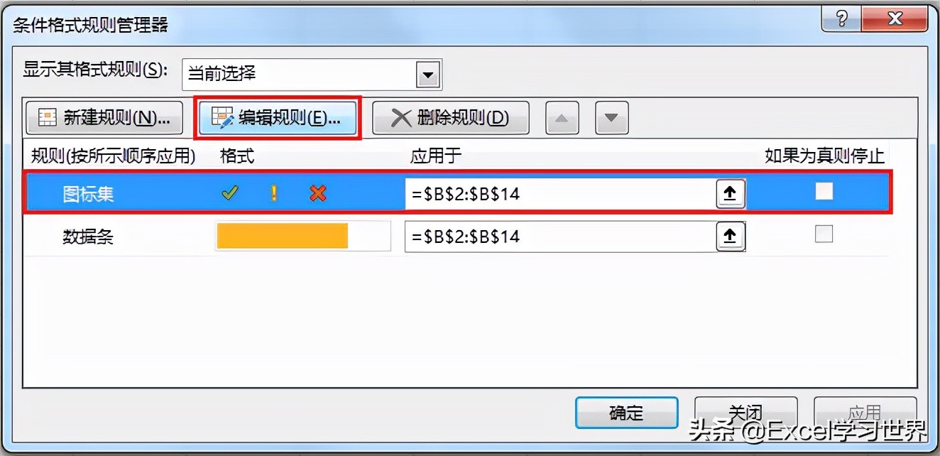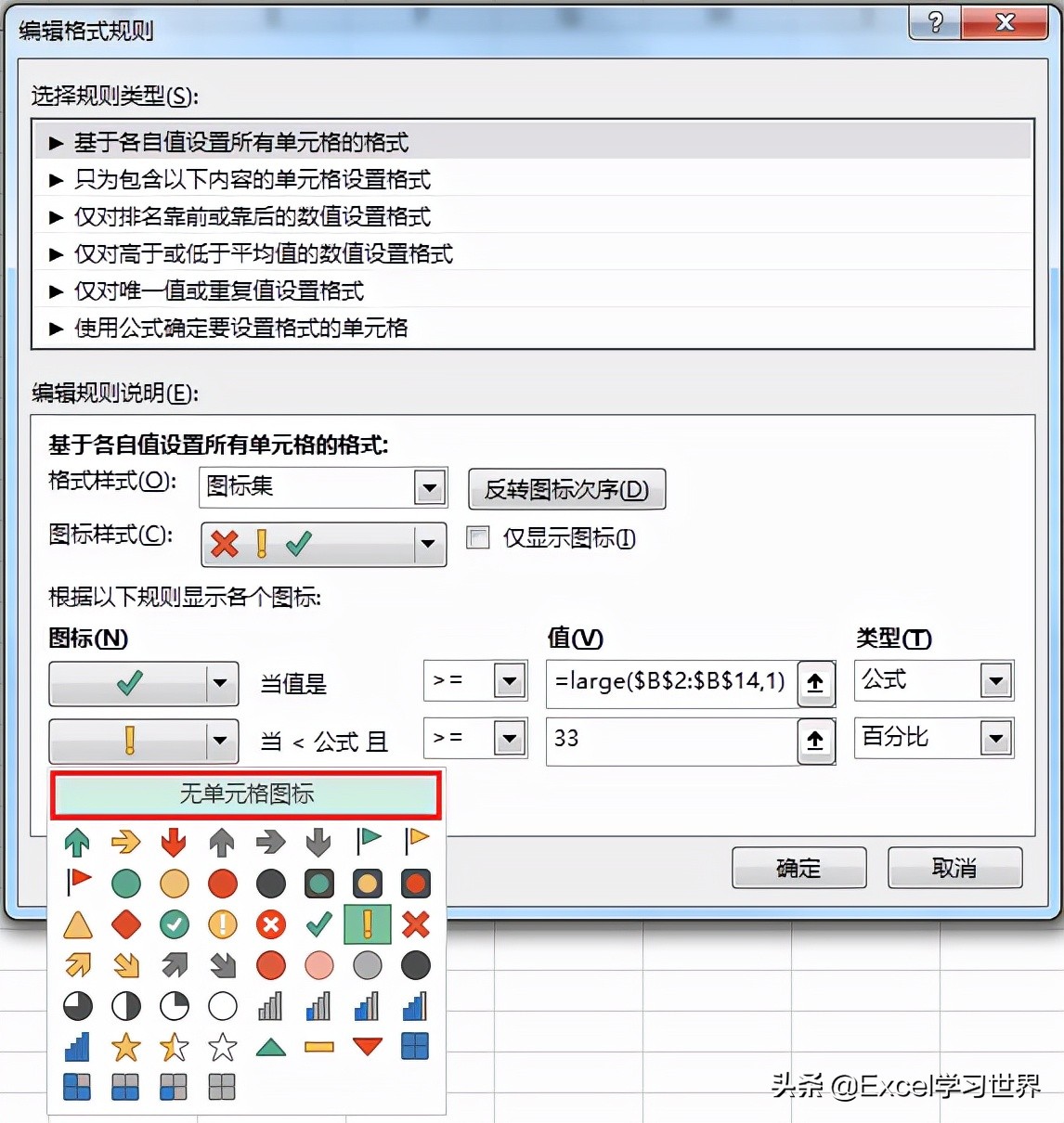 4. 在弹出的对话框中选中“图标集”--> 点击“编辑规则”按钮